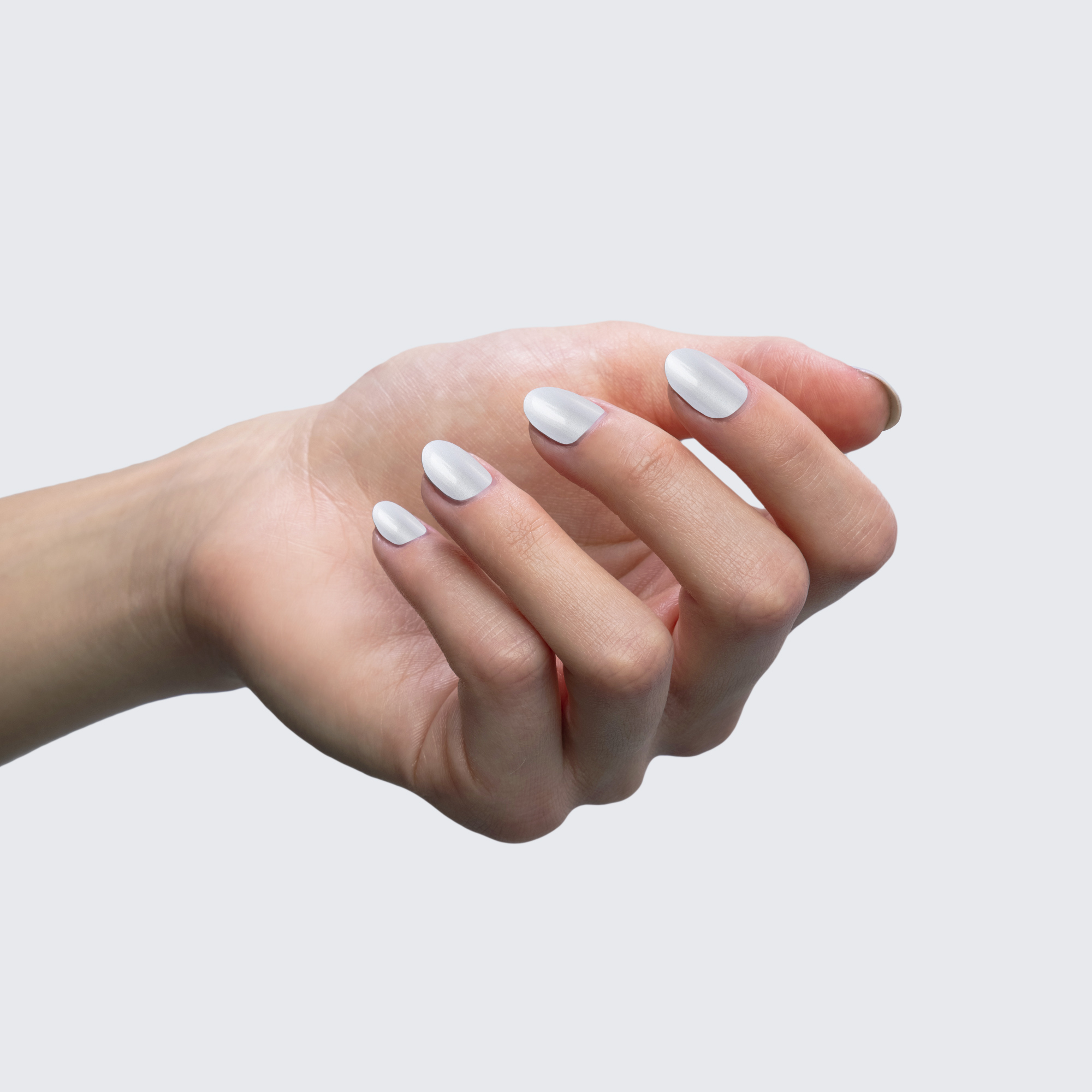 White. Pearl finish. Opaque. Cool undertone.